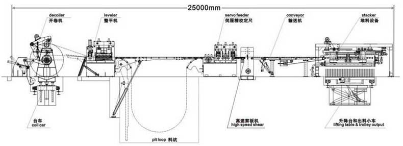 廣州市漢達五金機械有限公司的鋼板下料生產線,用于將整卷鋼材通過上料、開卷、入料、整平、NC 定尺送料、廢料處理、沖壓等一序列工序,加工成工廠所需的鋼板尺寸和形狀。
