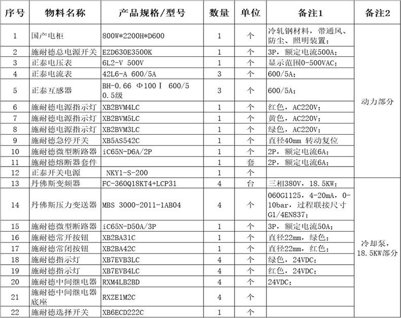 2、電柜清單