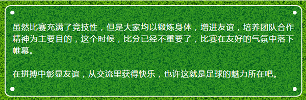 一天的友誼賽下來(lái),大家都摩拳擦掌,信心滿滿。希望在決賽中發(fā)揮實(shí)力,比出水平。