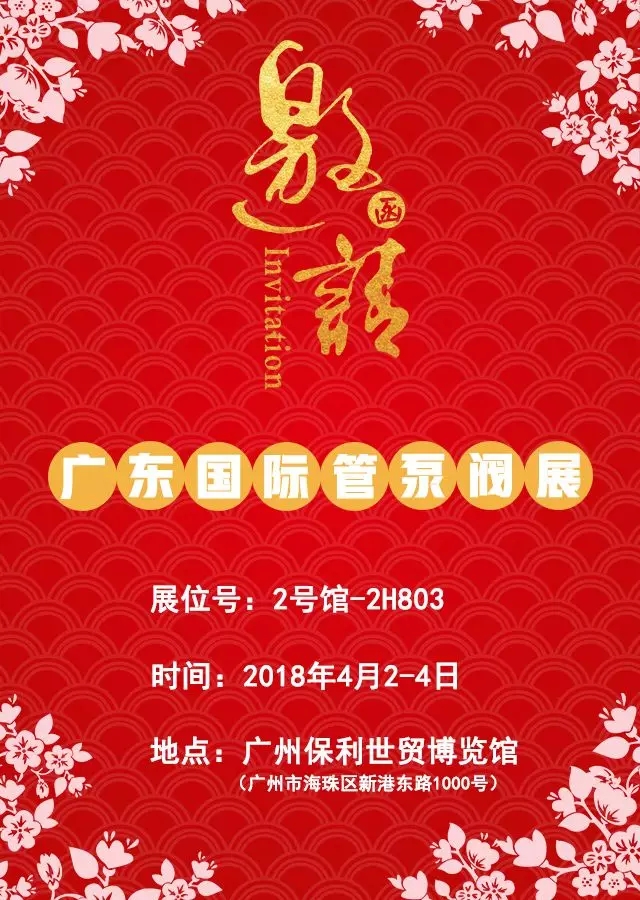 2018廣東國際泵管閥展于4月2-4日在廣州保利世貿博覽館舉辦。50萬大數據資源平臺,主辦方大力開發華南地區終端市場、外貿及海外經銷商,為你帶來華南首屈一指的專業展會。