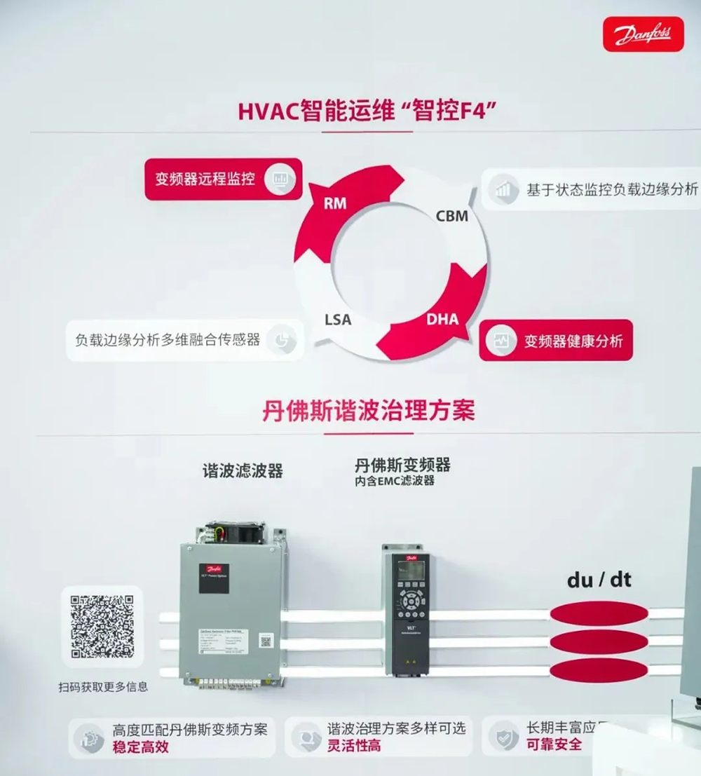 丹佛斯擁有多種諧波抑制的解決方案,有效降低諧波含量,提高了系統效率,實現長期穩定運行。丹佛斯經認證的控制諧波的解決方案包含有源濾波器、高級無源濾波器、低諧波變頻器、多脈沖變頻器及有源前端變頻器。此外,丹佛斯以“丹管家”智能運維解決方案為核心,為綠色廠務提供從監測到優化的全鏈路支持,包含變頻器遠程監控(RM)、基于狀態監控負載邊緣分析(CBM)、變頻器健康分析(DHA)及負載邊緣分析多維融合傳感器(LSA),可有效降低老舊廠房綠色改造升級的成本,經濟價值凸顯。