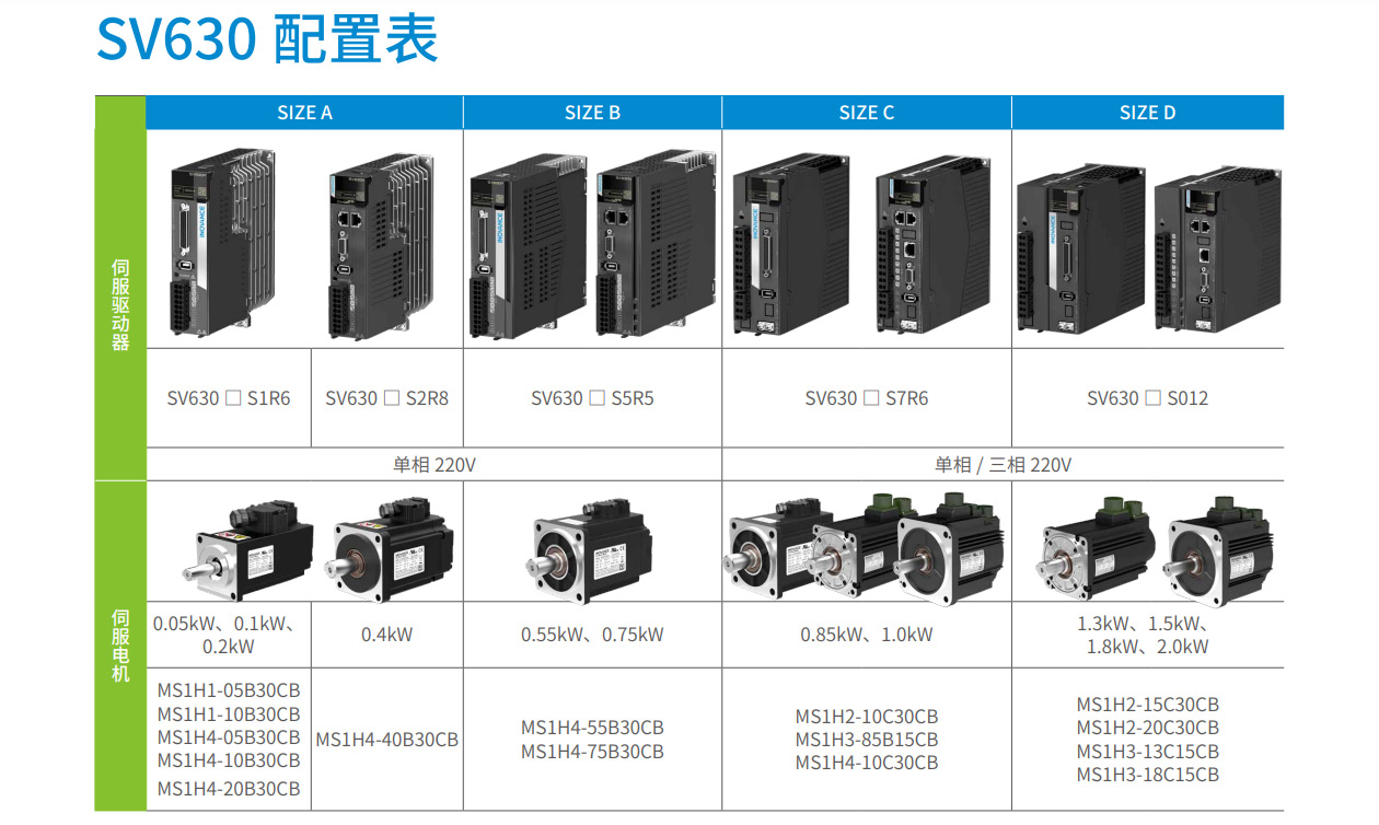 SV630 系列伺服是匯川技術研制的高性能中小功率的交流伺服產品。該系列產品功率范圍為0.05kW ~ 7.5 kW,采用以太網通訊接口,支持EtherCAT 、Modbus、CANopen 和CANLink 等通信協議,采用對應的通信接口,配合上位機可實現多臺伺服驅動器聯網運行。